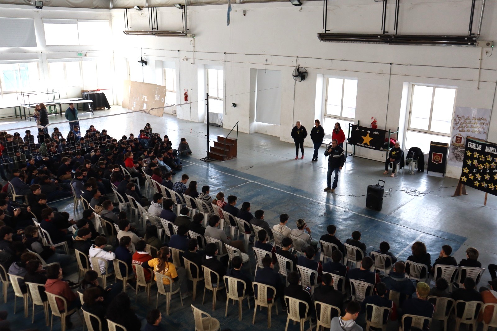 La Dirección General de Seguridad y Estrellas Amarillas visitaron la Escuela Industrial, en la continuidad de las jornadas de concientización.