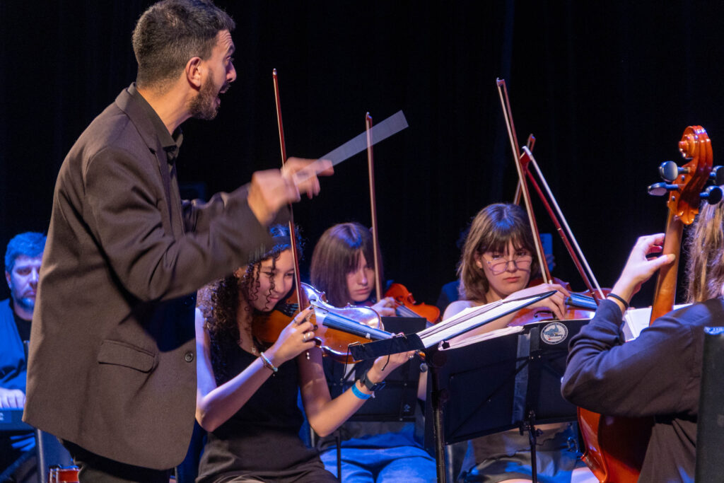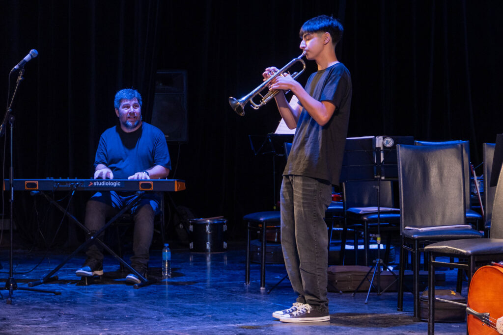 Con un repertorio variado, presentaciones individuales y ensamble de instrumentos, la orquesta dirigida por el juninense Matías Amarilla ofreció una muestra del trabajo del año, en la nueva etapa iniciada en abril, con el acompañamiento de las familias y un nuevo staff de profesores.