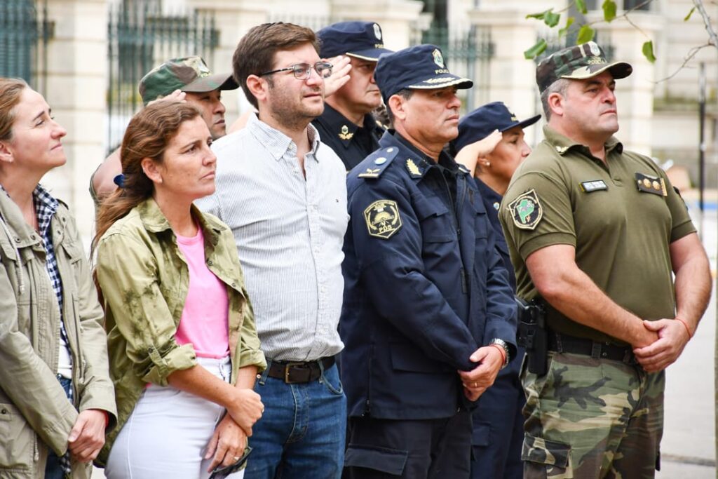 Las actividades protocolares fueron encabzadas por el intendente Sergio Barenghi y estuvieron presentes también autoridades de la Municipalidad; concejales; consejeros escolares; Bomberos Voluntarios; fuerzas de seguridad; referentes locales de la cultura; y vecinos.