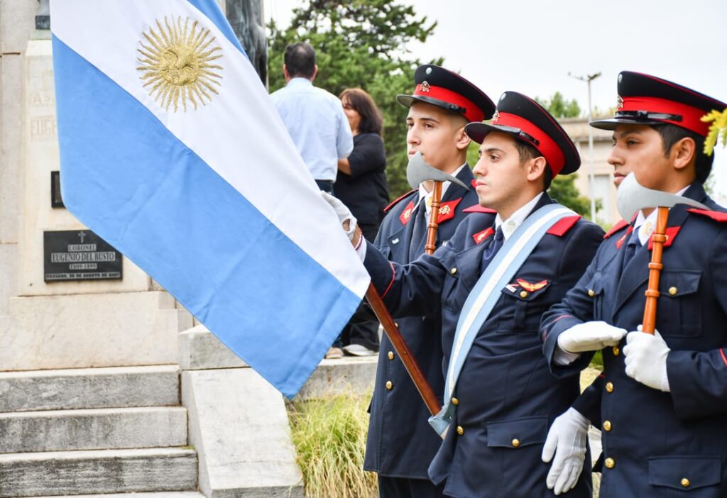 Durante la jornada, se entonaron las estrofas del Himno Nacional Argentino y se entregó una ofrenda floral al Coronel Eugenio Del Busto, figura trascendental de la historia del distrito, ya que tuvo a su cargo la tarea de fundar el Cantón Militar al que denominó Santa Rosa del Bragado.